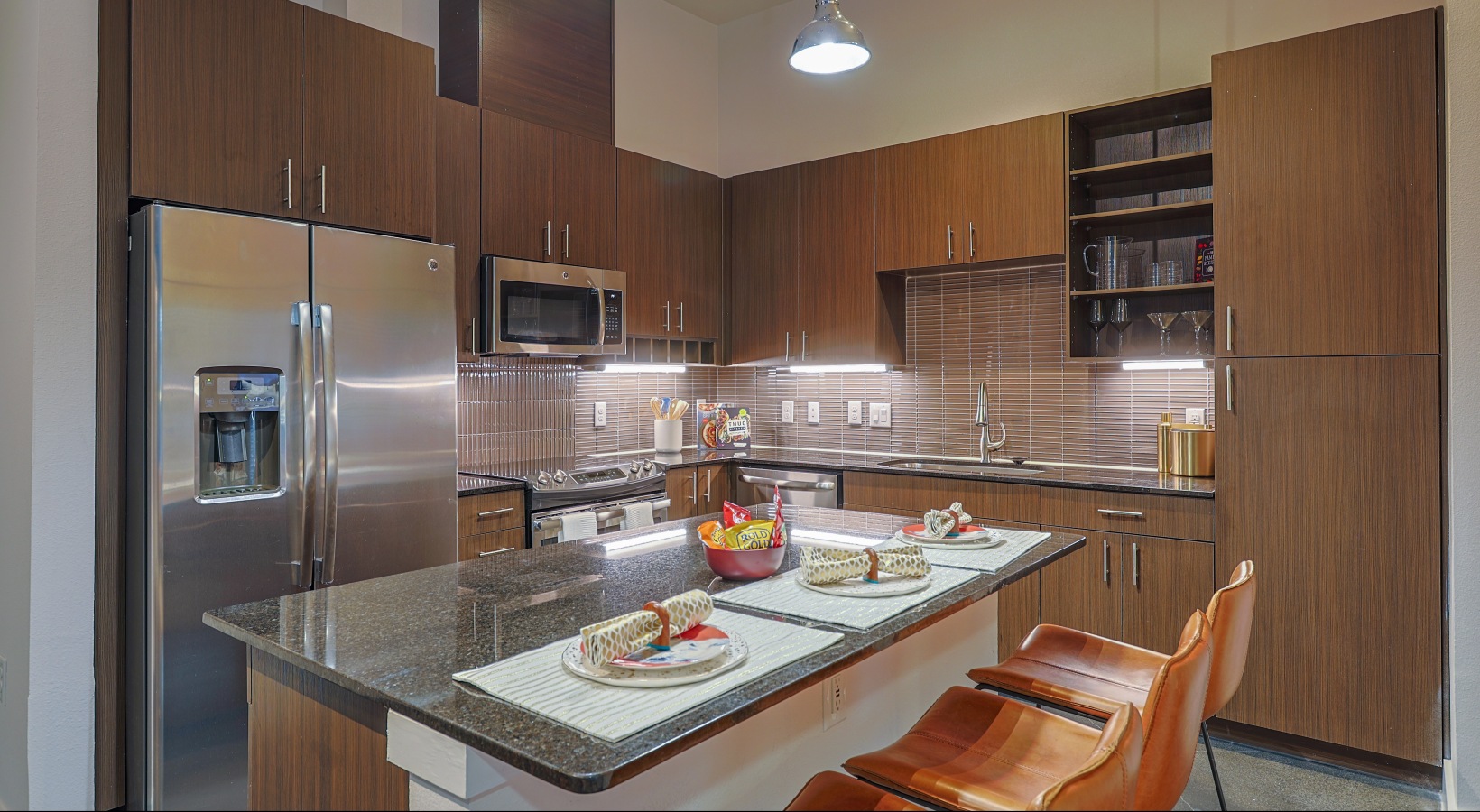 Our thoughtfully designed layouts complement your daily rhythm. Choose from studio, one-, and two-bedroom apartments featuring quartz countertops, stainless steel appliances, Bluetooth speakers, full-size washers and dryers, and innovative storage solutions. Select homes also feature private balconies, providing the ideal space to relax and take in Austin’s gorgeous skyline.